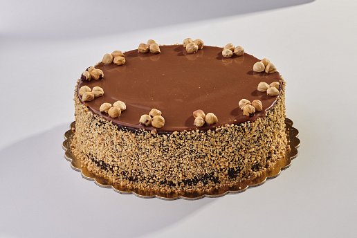 oříškový piškot s krémem ze smetany a mascarpone a 100% lískooříškovou pastou. Obsypaný ořechy a zatřený karamelem. Složení: bezlepková mouka, vlašské a lískové ořechy, vejce, mléko, karamel se smetanou, lískooříšková pasta. Stopy: arašídy, lepek, soja